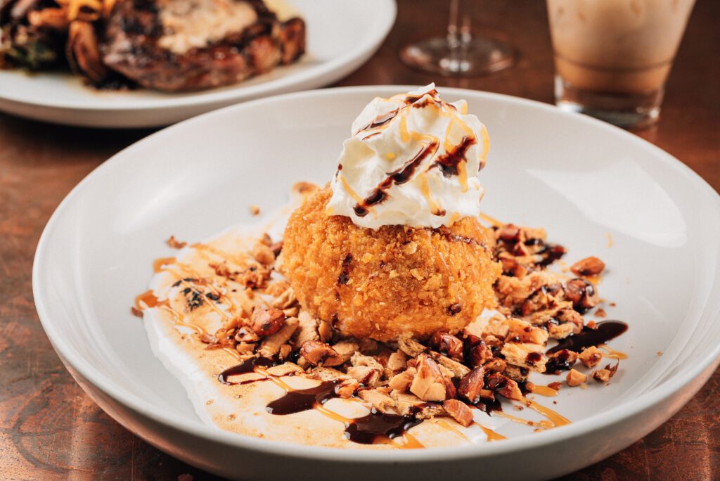 Crispy fried ice cream, toasted marshmallow, bourbon caramel, chocolate sauce, graham cracker crumbles, smoked almonds, whipped cream